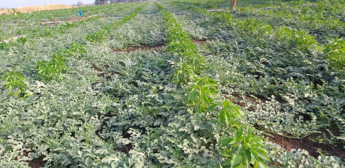 शेतकरी मित्रांनो कलिंगड पिकात घेतलेले मिरचीचे अंतर पीक