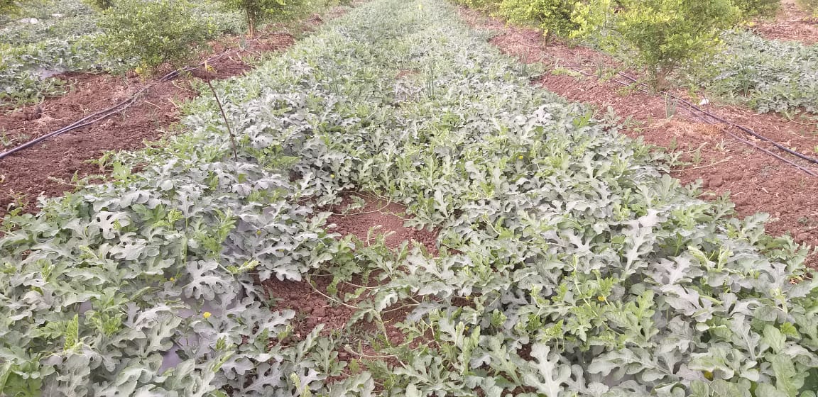लिंबोणीच्या बागेमधे घेतलेले कलिंगडाचे अंतर पिक