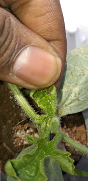 कलिंगड प्लॉट ची पाहणी करत असताना असे निदर्शनास आले की प्लॉट मदे नागअळी, थ्रीप्स चा प्रादुर्भाव आहे